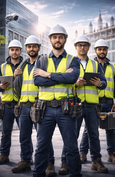 Our vision is to be a technically driven system integrator specializing in the design, integration, and implementation of advanced security and low-current systems that comply with international standards and industry best practices. We aim to deliver engineered solutions that combine CCTV, access control, intrusion detection, structured cabling, and data networks into fully integrated, reliable, and scalable platforms. Through strong engineering design, precise project execution, rigorous testing, and commissioning processes, we ensure system performance, interoperability, and long-term operational reliability.